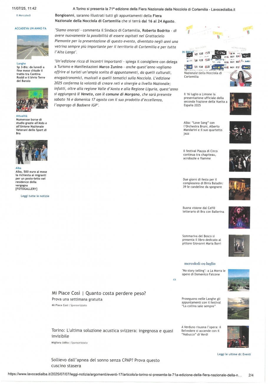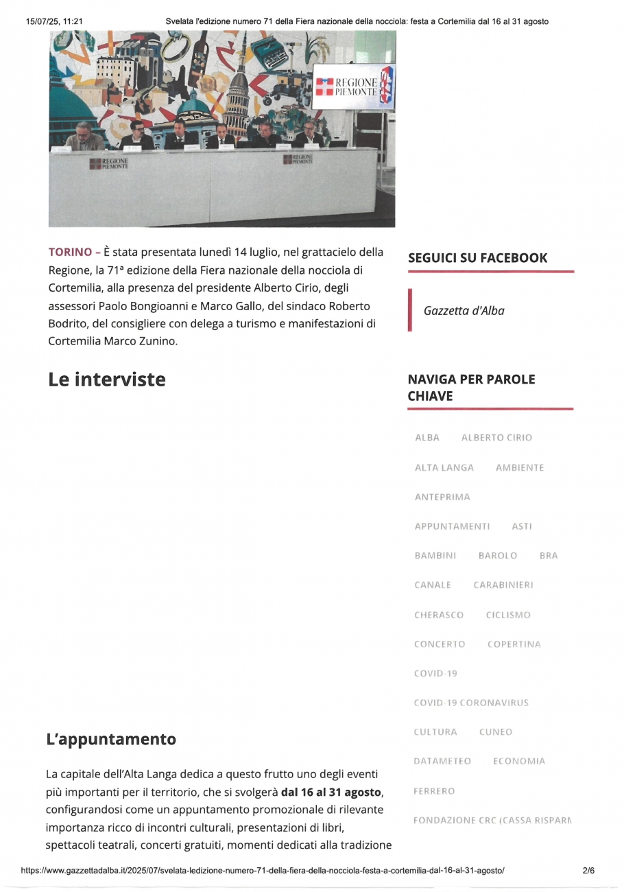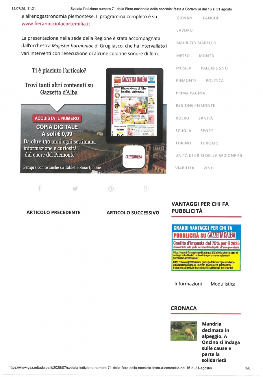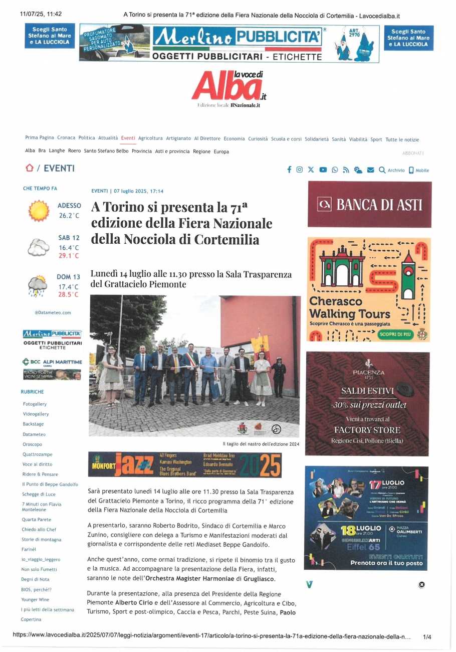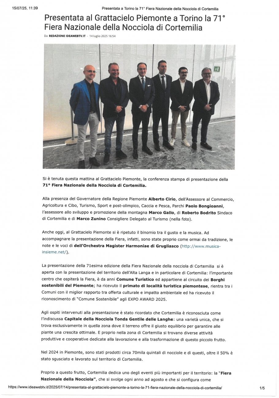 News » Rassegna Stampa » 2025 » L'Orchestra Magister Harmoniae ha suonato alla presentazione della 71a edizione della Fiera Nazionale della Nocciola di Cortemilia »