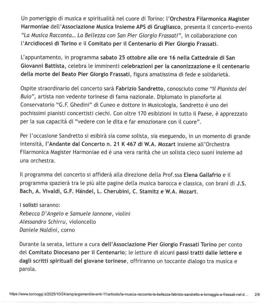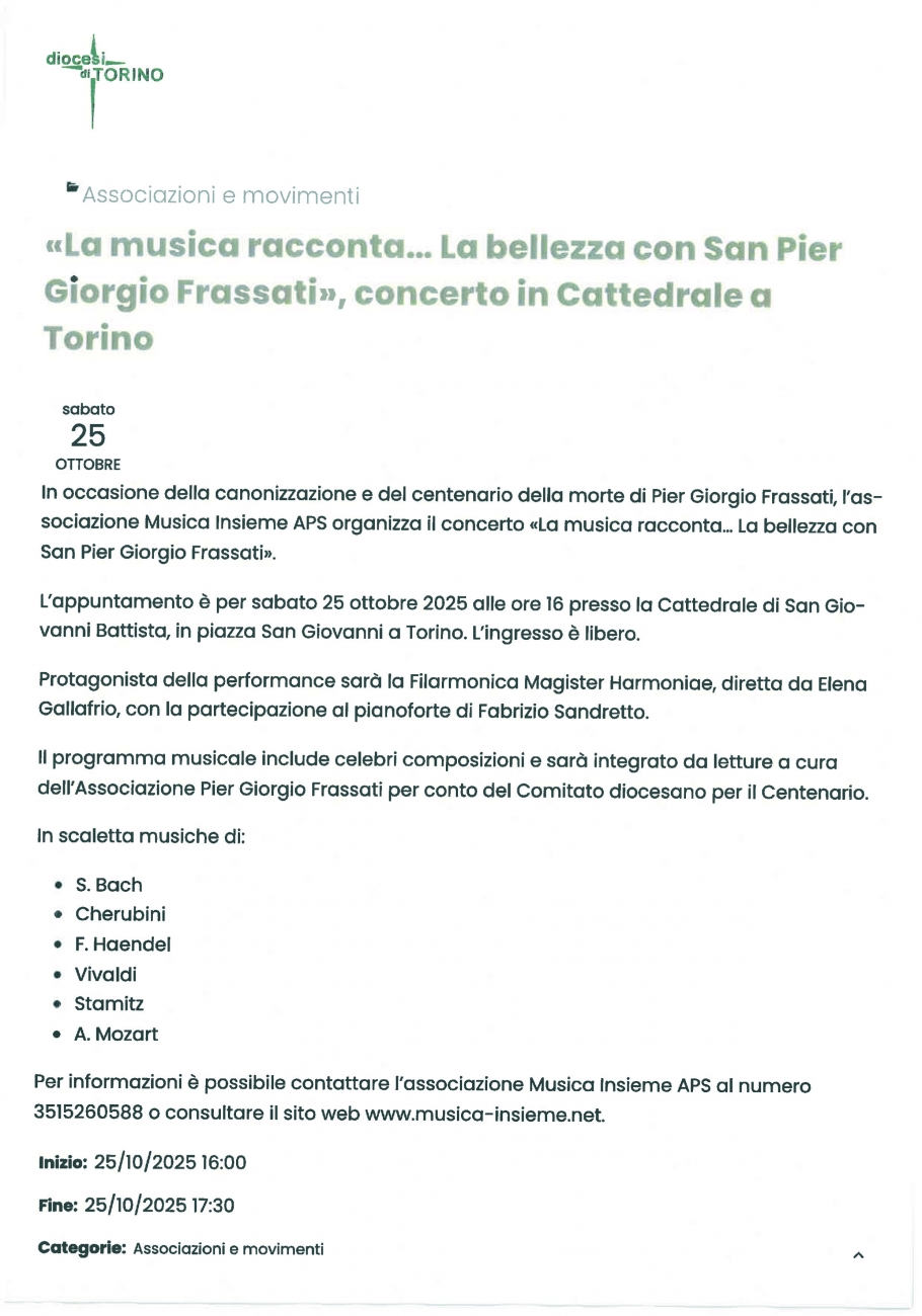 News » Rassegna Stampa » 2025 » La Musica Racconta… La Bellezza con San Pier Giorgio Frassati »