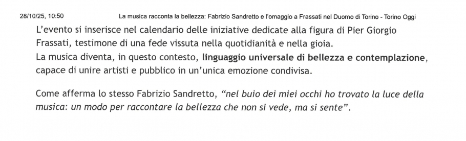 News » Rassegna Stampa » 2025 » La Musica Racconta… La Bellezza con San Pier Giorgio Frassati »